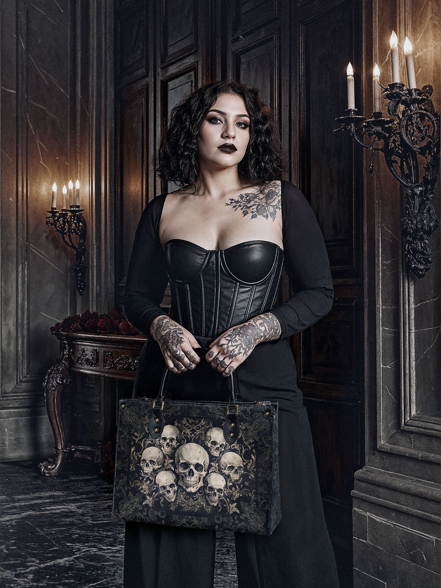 Every handbag blends gothic inspiration from literature, skulls and dark floral motifs with premium leather craftsmanship. Built to last with durable materials and thoughtful details, it is a piece made to be both captivating and timeless.